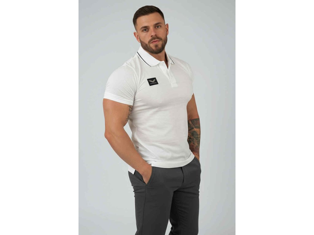 Prémiové mercerované polo v atletickém muscle–slim střihu, které zvýrazní postavu a drží perfektní tvar. Luxusní hladký materiál, kontrastní detail límce a PVC square logo na prsou dávají tričku čistý moderní vzhled. Ideální kombinace elegance a výkonu pro každý den.